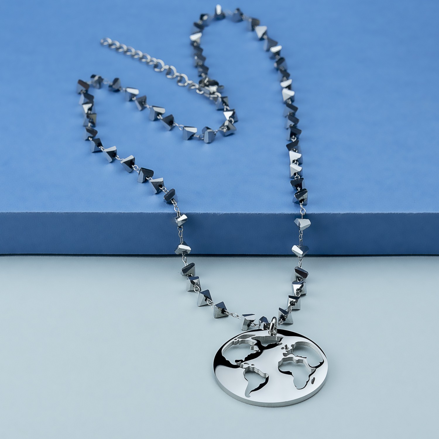 Girocollo mondo in acciaio inox con catena di cristalli argentati