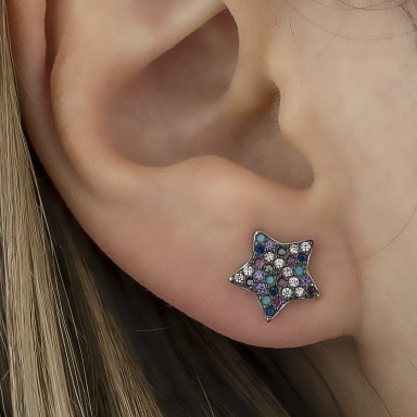 Orecchino singolo bambina in argento 925 rodiato con zirconi